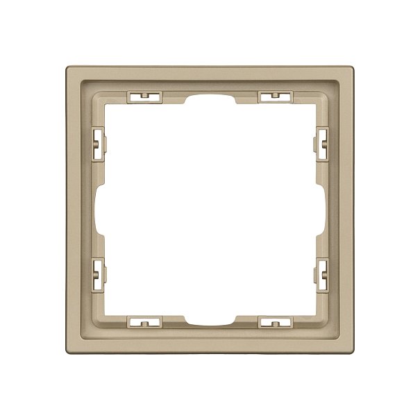 Рамка пластиковая на 1 пост, под встраиваемый механизм. Цвет - золотой, с Soft-Touch покрытием. Среднего уровня герметичности IP20. Ориентация монтажа горизонтальная. Габаритные размеры: длина 81 мм, ширина 81 мм, высота 8,55 мм. Гарантийный срок 12 мес.