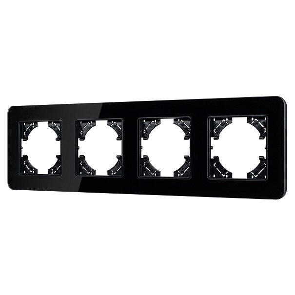 Рамка стеклянная на 4 поста, под встраиваемый механизм. Цвет - черный. Среднего уровня герметичности IP20. Ориентация монтажа - горизонтальная (основным ориентиром служат посадочные выступы для накладки механизма). Габаритные размеры: длина 299 мм, ширина 86 мм, высота 7 мм. Гарантийный срок 12 мес.