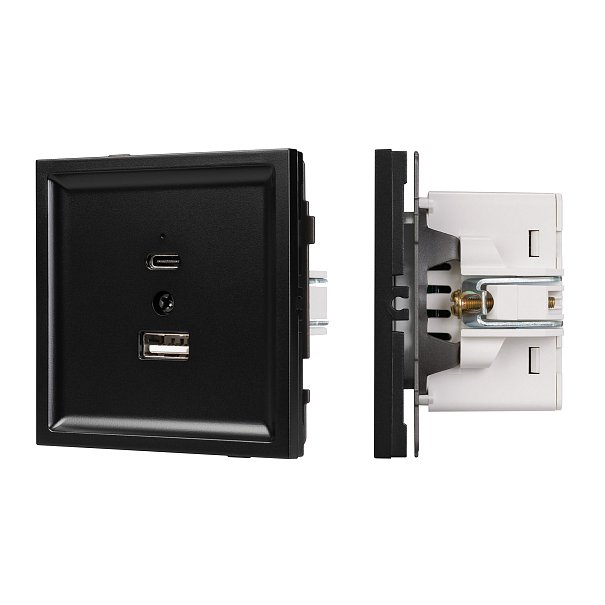 | 054095 | Механизм USB розетки SCT-TENDO-MUAC-PL-BK (5V, 3A, QC3) (Arlight, -) |