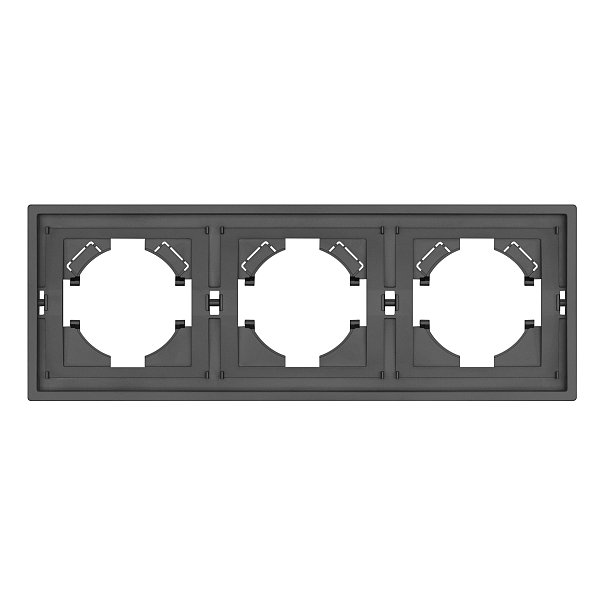 Рамка пластиковая на 3 поста, под встраиваемый механизм. Цвет - серый, с Soft-Touch покрытием. Среднего уровня герметичности IP20. Ориентация монтажа горизонтальная. Габаритные размеры: длина 221 мм, ширина 80 мм, высота 9 мм. Гарантийный срок 12 мес.