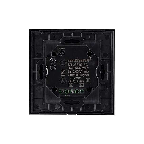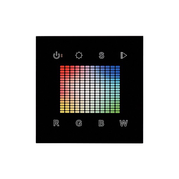 Встраиваемая стеклянная черная Touch-панель с уникальным сенсорным RGBW-квадратом, раздельная регулировка каналов (4 канала - R,G,B,W), 1 зона. Управление 1 зоной по радиоканалу контроллерами серии SR-1009. Питание 220 В. Размер 86x86x29 мм.