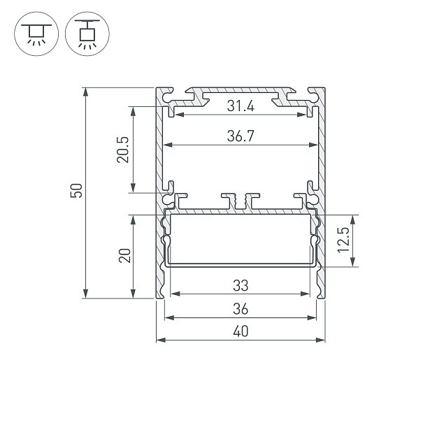 Профиль SL-LINE-4050-3L-2000 ANOD (Arlight, Алюминий)