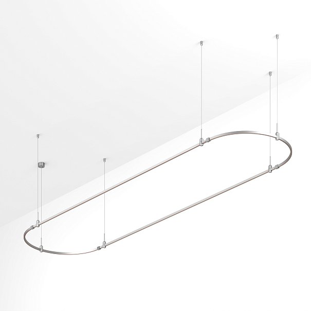 Подвесная конструкция APRIORI, форма овал. В комплекте треки с аксессуарами и гибкими подвесами. DC48V. Материал алюминий, цвет титан. Размер ДxШxВ: 4000x1000x22мм. Светильники и источники питания приобретаются отдельно.