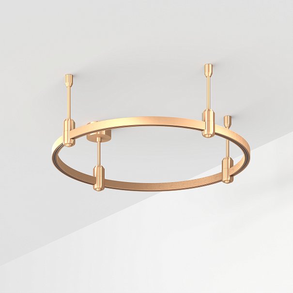 Подвесная конструкция APRIORI, форма круг. В комплекте треки с аксессуарами и жесткими подвесами длиной 200мм. DC48V. Материал алюминий, цвет светлое золото. Размер: диаметр 600мм, высота 22мм. Светильники и источники питания приобретаются отдельно.