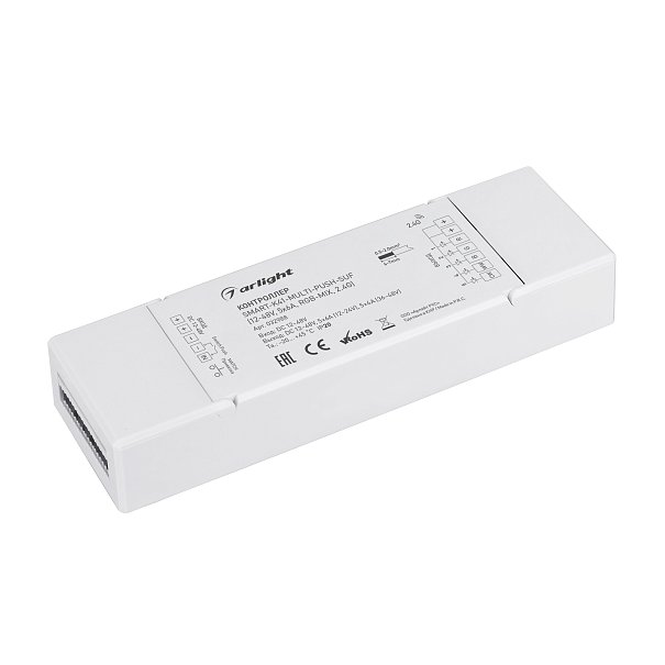 | 032988 | Контроллер SMART-K41-MULTI-PUSH-SUF (12-48V, 5x6A, RGB-MIX, 2.4G) (Arlight, IP20 Пластик, 5 лет) |