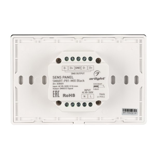 | 028401 | Панель Sens SMART-P81-MIX Black (230V, 4 зоны, 2.4G) (Arlight, IP20 Пластик, 5 лет) |