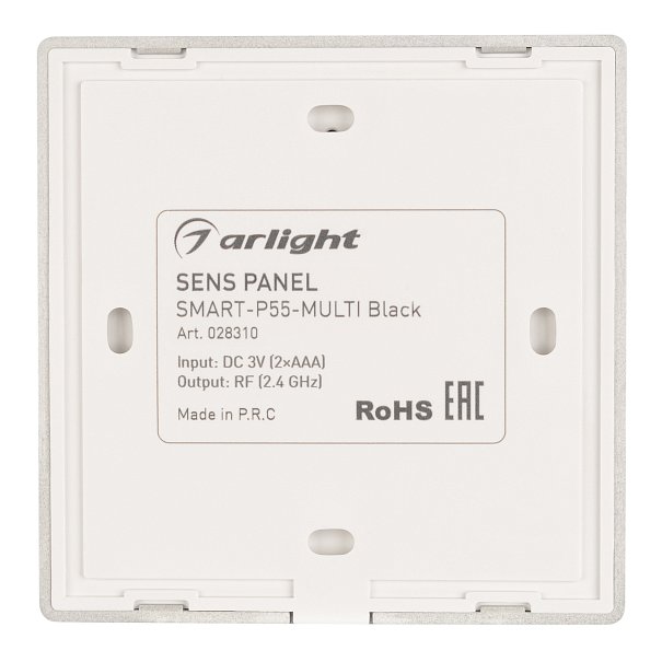 | 028310 | Панель Sens SMART-P55-MULTI Black (3V, 4 зоны, 2.4G) (Arlight, IP20 Пластик, 5 лет) |