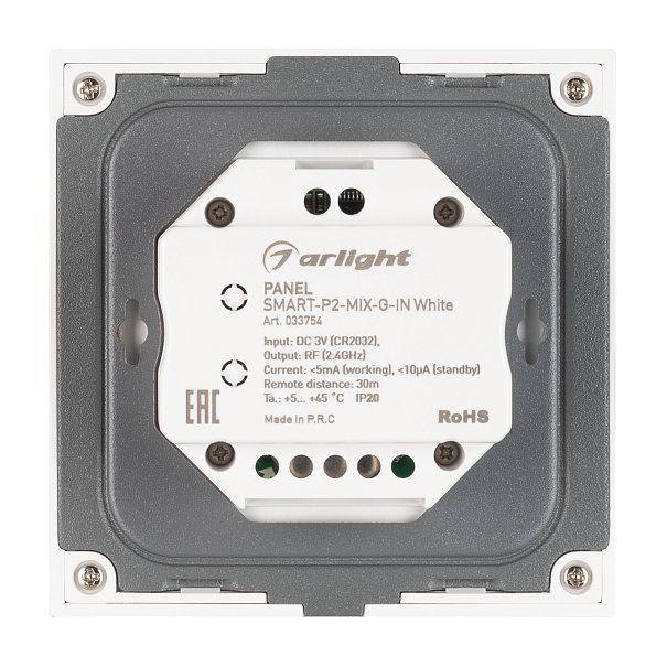 Панель SMART-P2-MIX-G-IN White (3V, Rotary, 2.4G) (Arlight, IP20 Пластик, 5 лет)