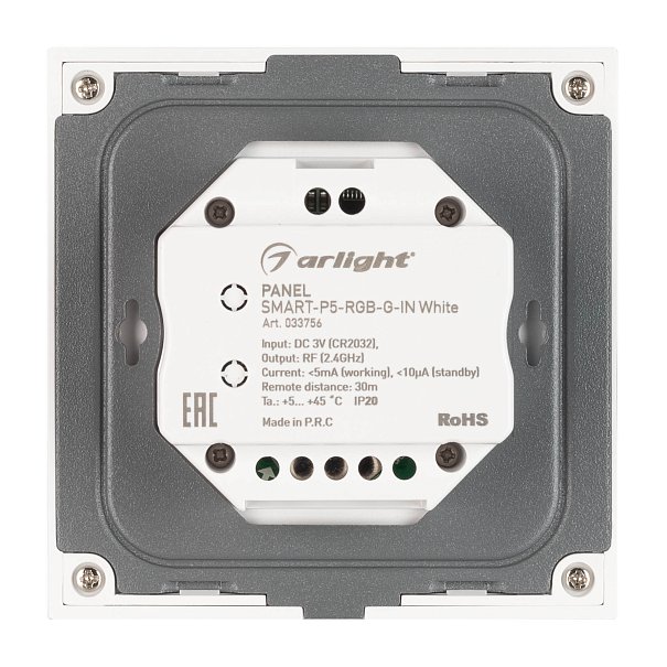 | 033756 | Панель SMART-P5-RGB-G-IN White (3V, Rotary, 2.4G) (Arlight, IP20 Пластик, 5 лет) |