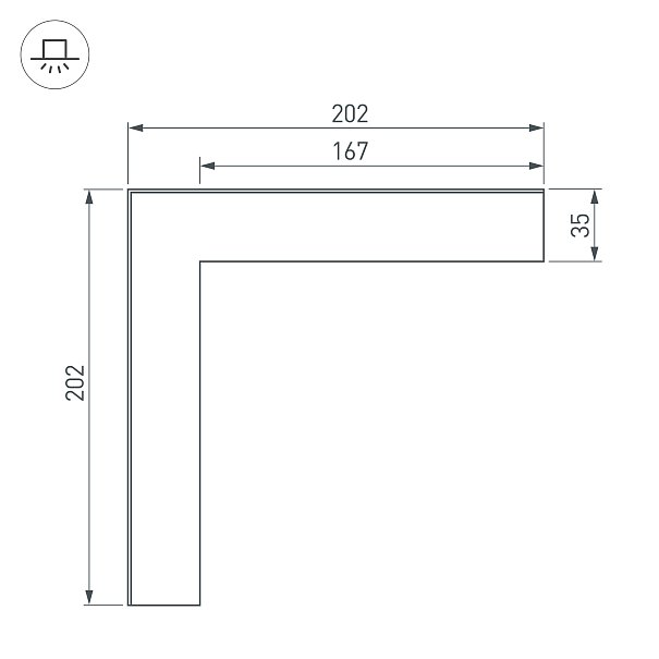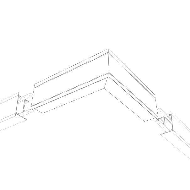 Угол в сборе, для профиля SL-LINIA65-F. Свечение наружу. В комплекте угол с экраном, соединители, винты, шестигранный ключ.