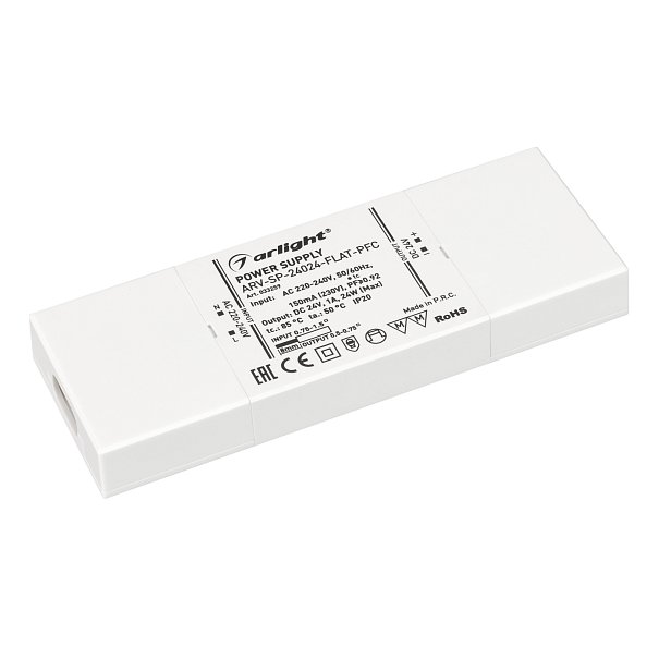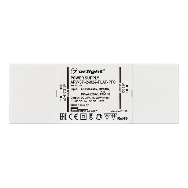| 033259 | Блок питания ARV-SP-24024-FLAT-PFC (24V, 1A, 24W) (Arlight, IP20 Пластик, 5 лет) |