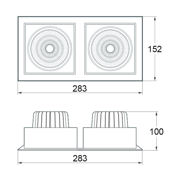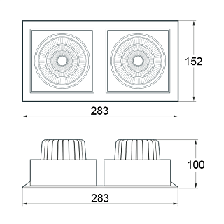 Встраиваемый карданный светильник. Угол 30° / 2x25Вт / БЕЛЫЙ 6000K / 4800лм, CRI>90. Корпус из белого алюминия с черными вставками. Питание AC220-240V, 50Вт, 700mA 30-42V, драйвер в комплекте, 2 шт. Размеры LxWxH: 283х152x100мм, отверстие для установки 265x135мм.