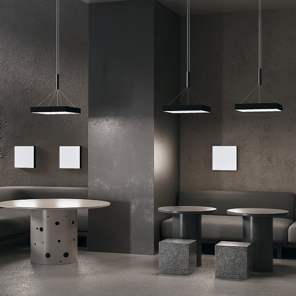 Материал корпуса – металл; цвета – чёрный, белый и золотой. Формы корпуса: круглая и квадратная. Типы монтажа: накладной, подвесной, а также трековые светильники. Подвесной монтаж универсален для обеих форм. Монтаж без видимых болтов. Варианты мощностей: 12W, 24W, 36W, 45W и 90W. LED-источник света. Цветовая температура – 3000 или 4000К. Высокий коэффициент цветопередачи. Совместимость с драйверами DALI и Triac для изменения цветовой температуры и диммирования. Аксессуар для монтажа круглых моделей в ГКЛ под шпаклёвку и универсальное крепление в ассортименте.