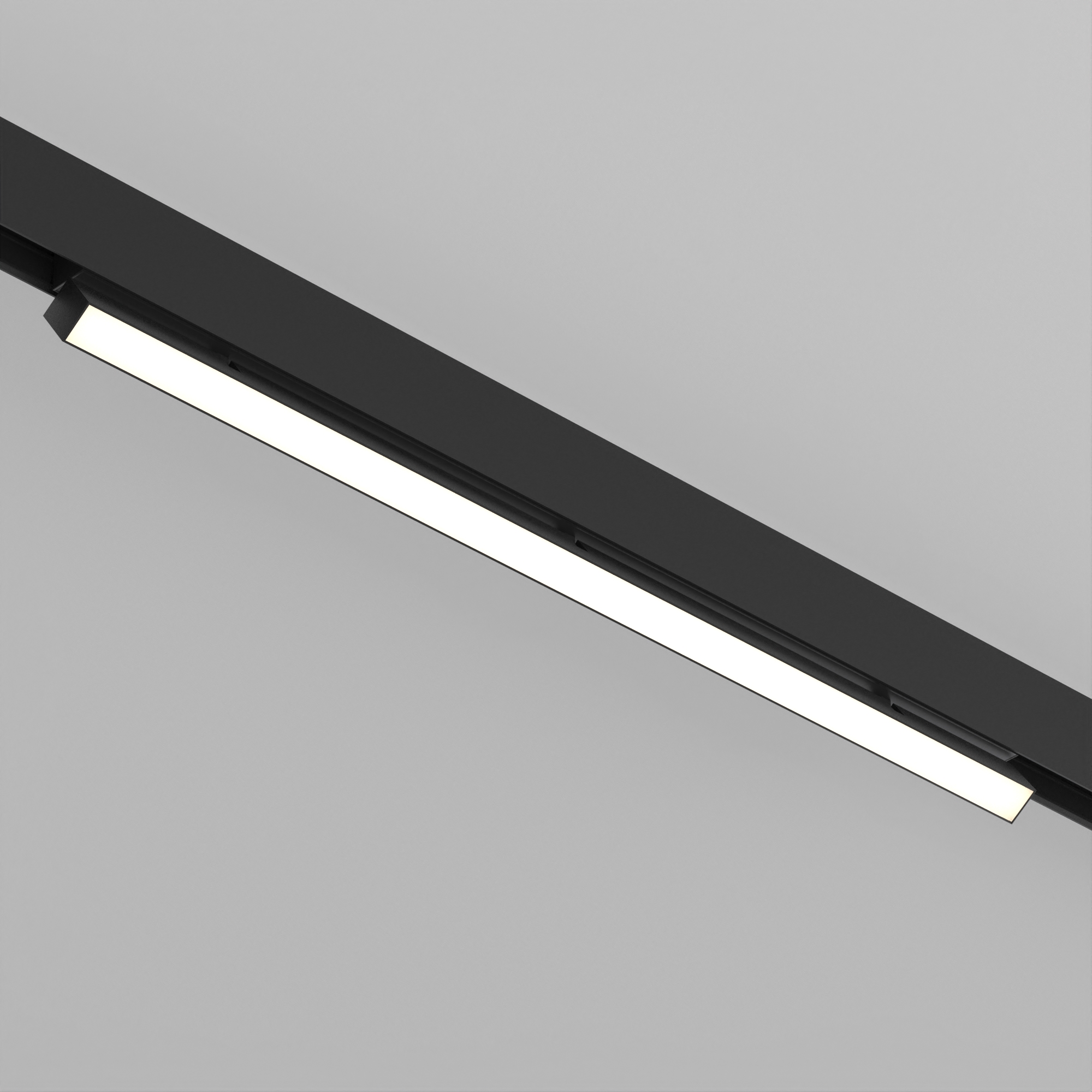 Светильник поворотный для магнитных треков шириной 45мм, 30Вт. Цвет свечения ТЕПЛЫЙ 3000K, световой поток 3000лм, угол 100°, CRI>90. Корпус прямоугольный, металл, цвет черный, IP20. Размеры LxWxH 1004x35x92.5мм. Входное напряжение DC24V, мощность 30Вт. Драйвер DС24V/AC230V поставляется отдельно. Диммируется только с 026407(1), 027633.