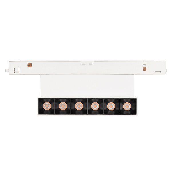 Светильник для магнитных треков MAG-ORIENT шириной 26 мм с управлением DALI. Мощность 6 Вт, св. поток 250 лм, 42 лм/Вт, дневной 4000 K, CRI>90, угол 30°, напряжение питания 48 В. Белый прямоугольный корпус из металл, экран поликарбонат, степень защиты IP20. Размер: длина 204 мм, ширина 23 мм, высота 104 мм. Монтаж на трек MAG-ORIENT. Пульсация <1%.