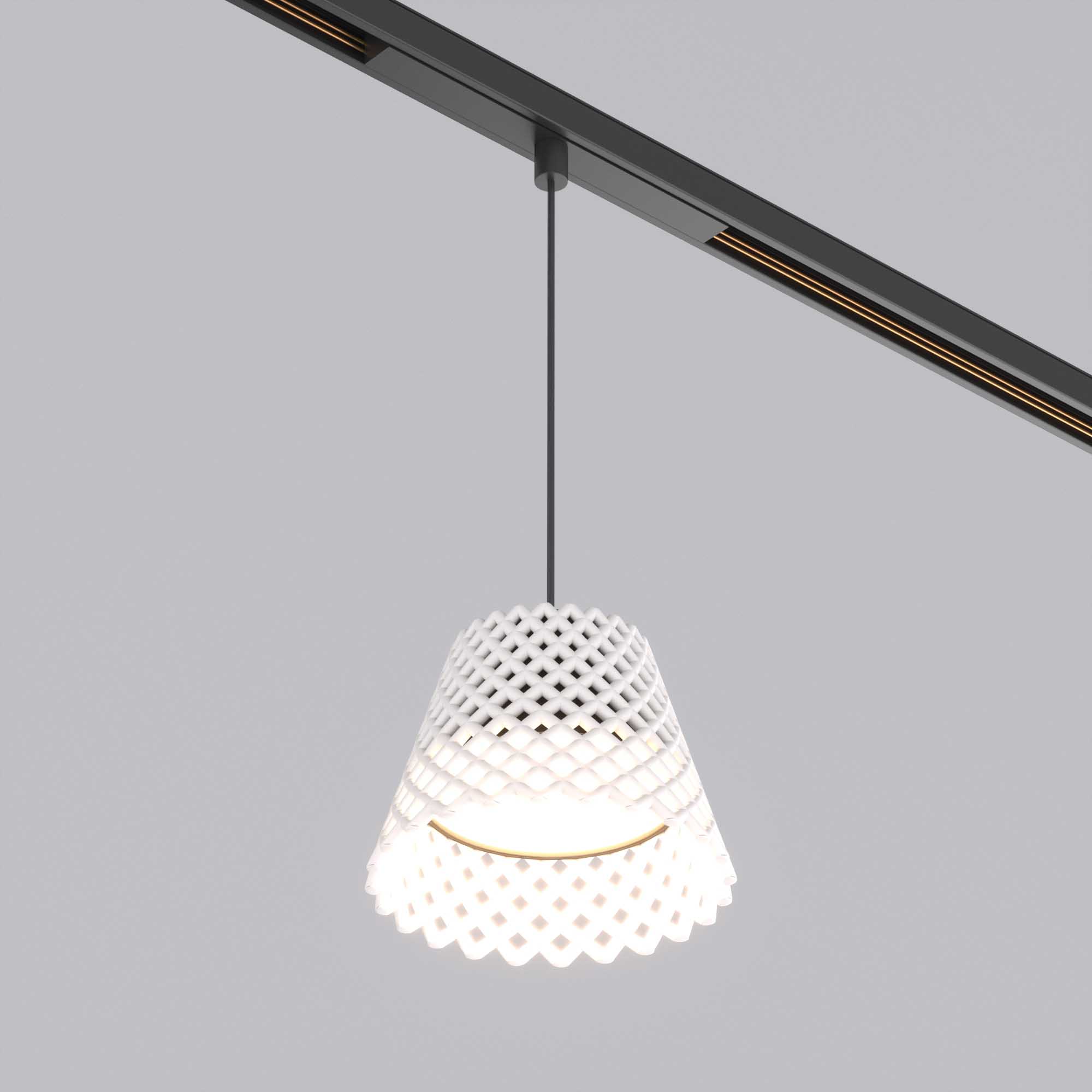 Светильник для магнитных треков MAG-ORIENT шириной 26 мм. Мощность 5 Вт, св. поток 120 лм, Дневной 4000 K, CRI>90, угол 80°, напряжение питания 48 В. Серый фигурный корпус из композитного материала на основе гипса, степень защиты IP20. Размер светоизлучающего модуля: 135*100 мм. Длина подвеса 1500мм. Монтаж на трек MAG-ORIENT. Подвес не регулируется.