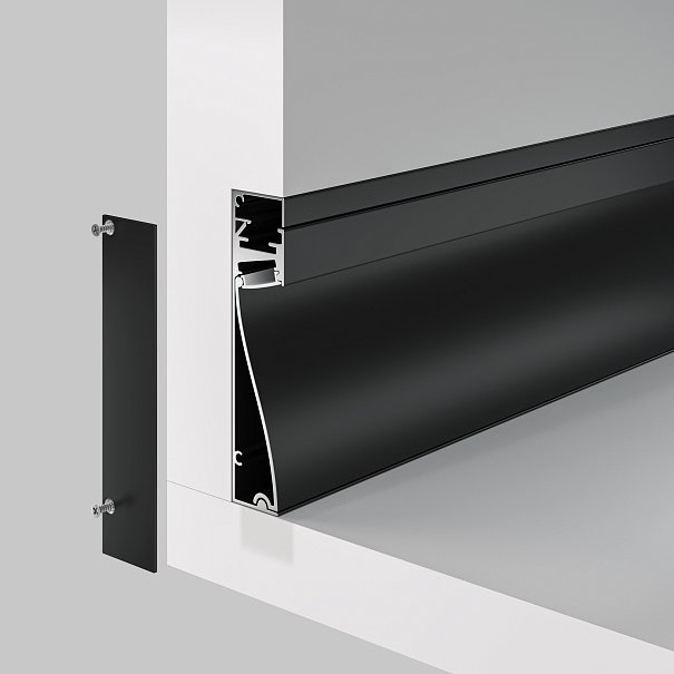 Алюминиевый профиль для создания светового плинтуса предназначен для контурной подсветки помещений и проходных зон с эффектом "парящих стен". Выполнен из анодированного алюминия, который отличается повышенной устойчивостью к коррозии и повреждениям. Позволяет продлить срок службы светодиодных лент благодаря эффективному рассеиванию тепла.