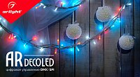 Светодиодная нить Pro. Размер 10000 мм. Цвет свечения RGB, 100 светодиодов размером 7 мм с динамическими и статическими эффектами свечения с мягким световым рисунком (выпуклая молочно-белая линза), управление по протоколу DMX512. Смена эффектов и управление осуществляется с помощью контроллера с пультом. Провод белый, каучук. Питание 24 В, Мощность 10 Вт, защита IP65, применение в помещении и на улице под навесом. Аксессуары для подключения и управления приобретаются отдельно. Для эксплуатации и выбора динамического режима необходимо приобрести контроллер и DMX512 декодер (см. совместимые). Актуальная схема подключения в паспорте изделия.