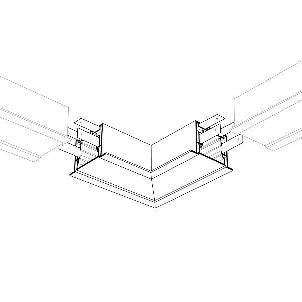 Прямой угол в сборе для соединения 2-х профилей S2-LINIA55-F под прямым углом 90°. Экран образует линию на плоскости. В комплекте матовый экран, соединители. Длина внешней стороны угла 100мм.
