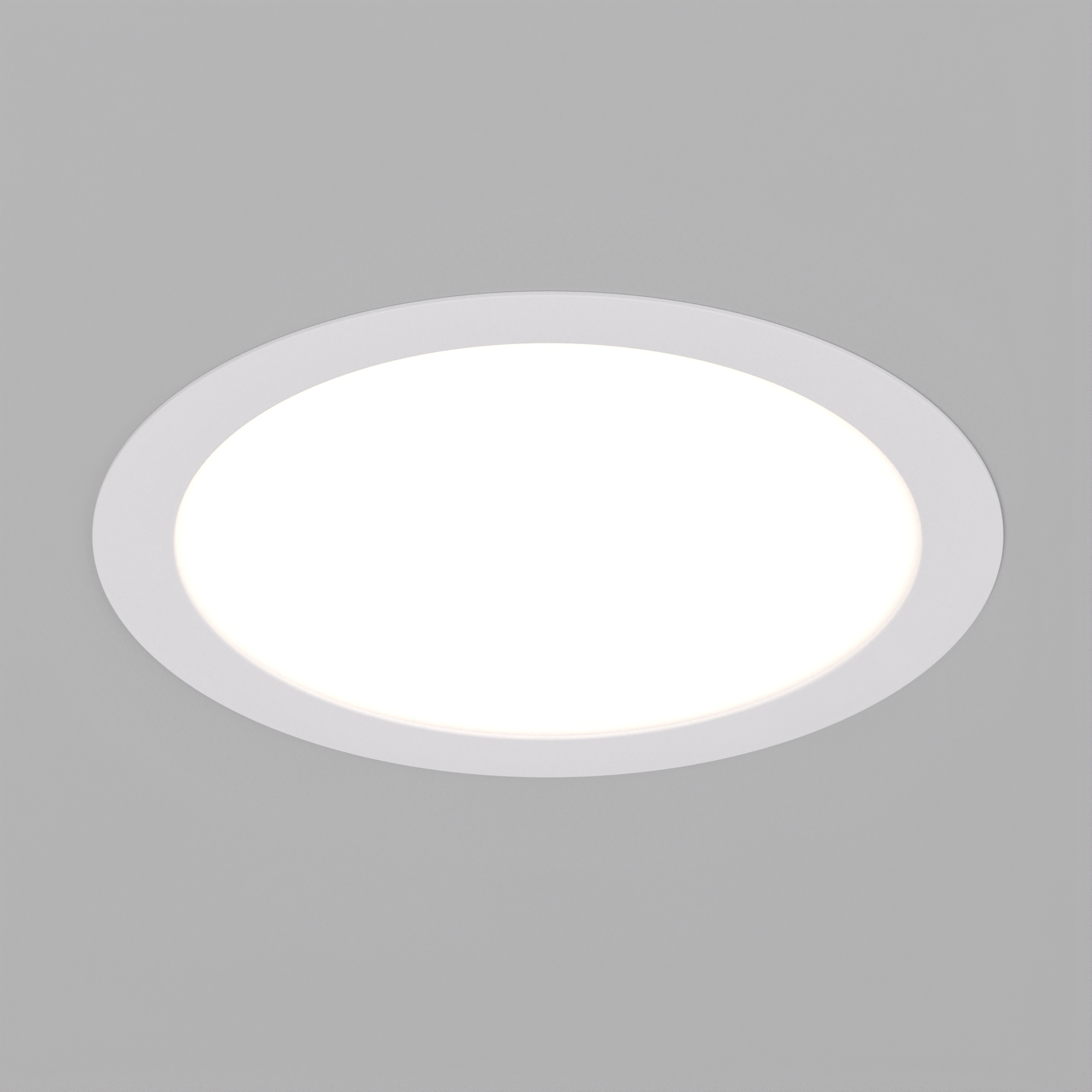 Тонкая круглая панель, белая, 25Вт / БЕЛЫЙ ТЕПЛЫЙ 3000K / 1920лм / 120°. CRI>80. Размер Ф300 x 13мм (в отверстие 280мм). Корпус круглый плоский, белый. Питание от сети 220VAC, драйвер в комплекте (не диммируется, 30-40V, 600mA).