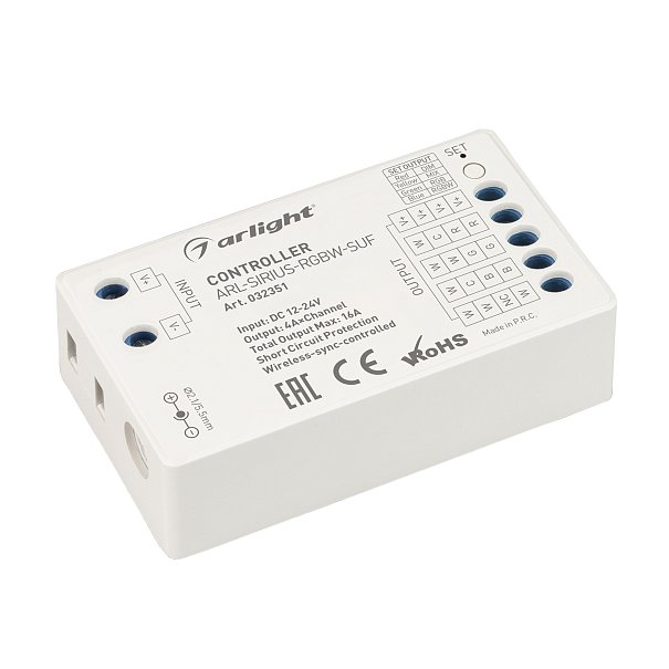 | 032351 | Контроллер ARL-SIRIUS-RGBW-SUF (12-24V, 4x4A, 2.4G) (Arlight, IP20 Пластик, 3 года) |