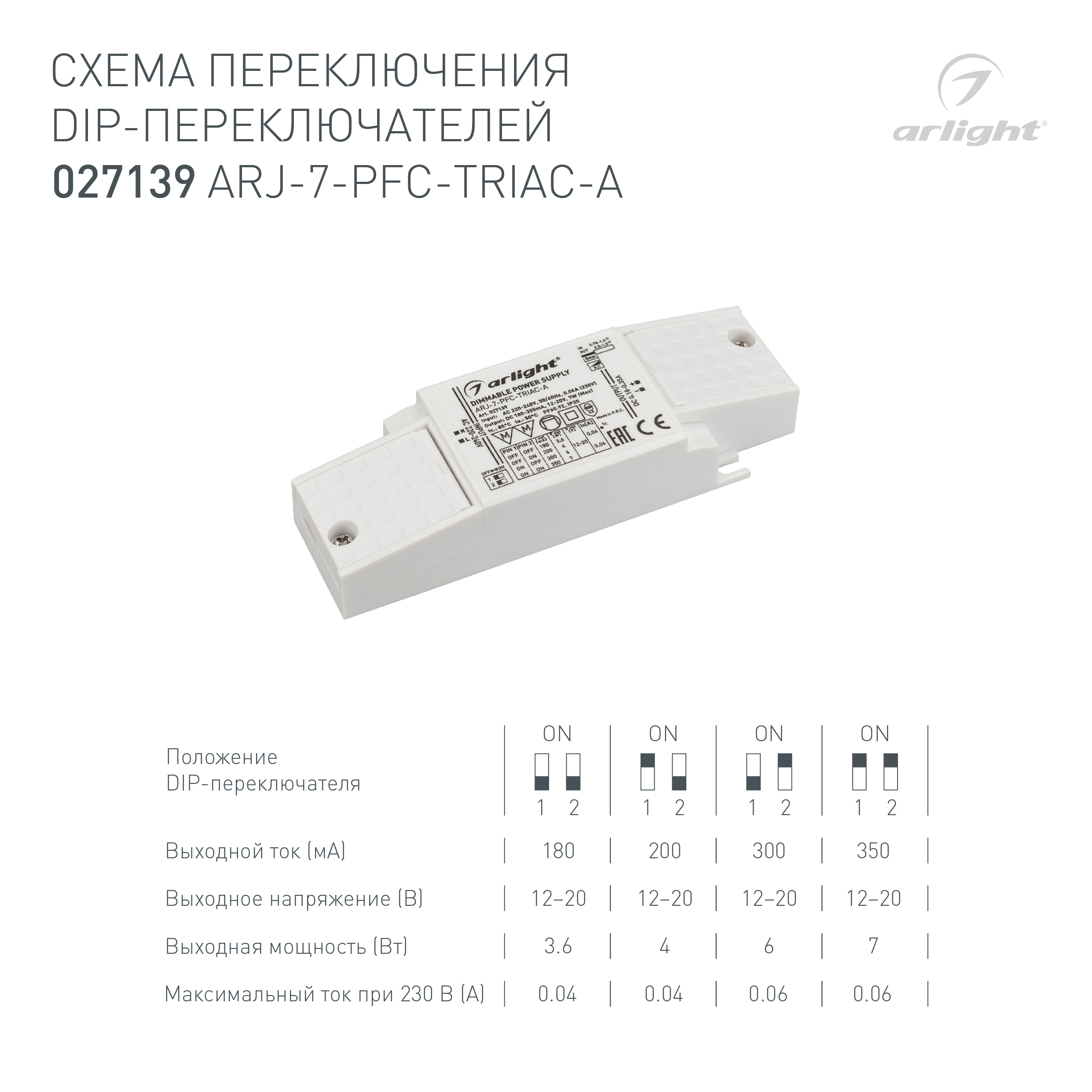 | 027139 | Блок питания ARJ-7-PFC-TRIAC-A (7W, 180-350mA) (Arlight, IP20 Пластик, 5 лет) |