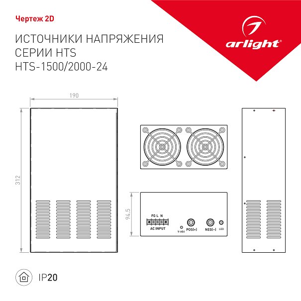 | 010512 | Блок питания HTS-1500-24 (24V, 62.5A, 1500W) (Arlight, IP20 Сетка, 3 года) |