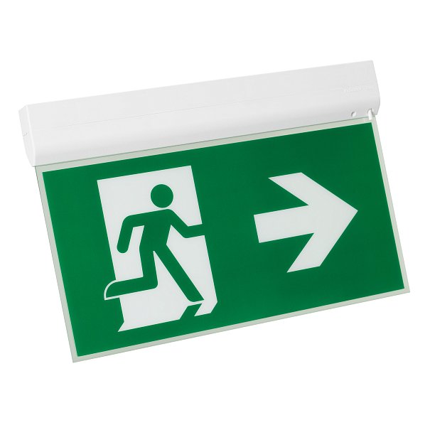 Аварийный указатель постоянного действия VECTOR со встроенной аккумуляторной батареей обеспечивает указание направления выхода при отключении основного питания от сети 220В. С помощью креплений из комплекта можно установить на стену и потолок, также для этой панели есть сменные пиктограммы, подвесы и комплект для встройки в потолок.