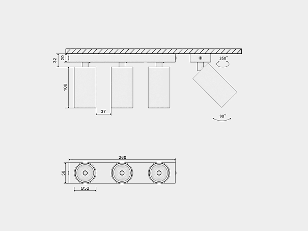 | 00-00004874 | Крепление сменное М13 для светильников MINI VILLY, поворотное накладное тройное, цвет Белый, MINI-VL-M13-WH |