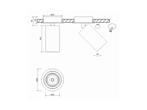 Крепление сменное М4 для светильников MINI VILLY, поворотное встраиваемое, цвет Черный, MINI-VL-M4-BL