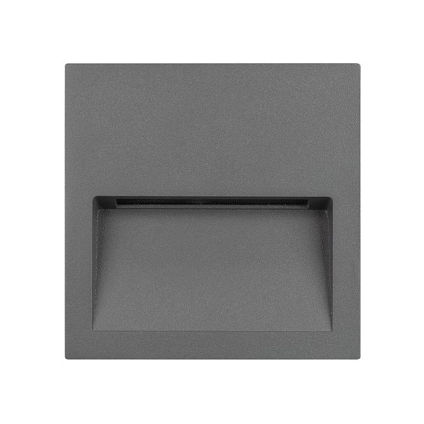 Светодиодный встраиваемый квадратный светильник для стен, лестниц, 4Вт. Цвет ТЕПЛЫЙ БЕЛЫЙ 3000K, св.поток 220лм, CRI(Ra)>80, угол 70°, асимметричный свет. Размер 115x115x37мм (закладная часть 109x107x55мм). Влагозащищенный корпус IP65, алюминий серого цвета. Питание AC230V, 4Вт, встроенный драйвер.