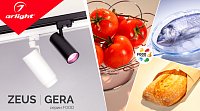 Светильник для треков/шин 4 провода для продуктов. Мощность 20 Вт, св. поток 835 лм, 42 лм/Вт, специальный теплый 2900 K (с розовым оттенком) для мяса, изменяемый угол 20-60°, напряжение питания 230 В. Черный корпус из алюминия, материал линзы PMMA, степень защиты IP20. Размер: диаметр 88 мм, высота 220 мм. Монтаж на трек 3-фазный. Драйвер 27-42 В, 500 мА, пульсация <1%.
