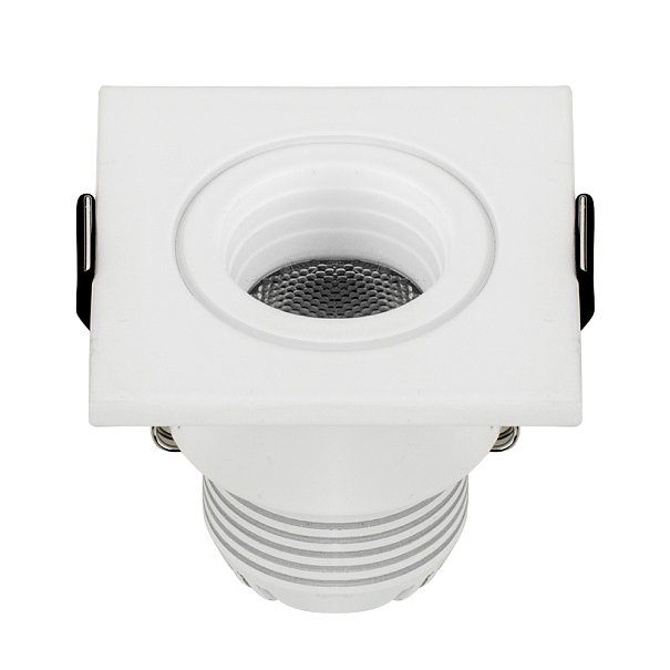 Врезной квадратный мебельный светильник 3Вт, корпус белый алюминий. Цвет ТЁПЛЫЙ 2700-3000K. Светодиод 1х3W CREE XPE. Св.поток 140-160лм, угол 30°. Питание 110-240VAC, 3Вт, 700mA 3-5V, драйвер в комплекте. Размеры 46x46x48 мм, врезное отверстие d39 мм.