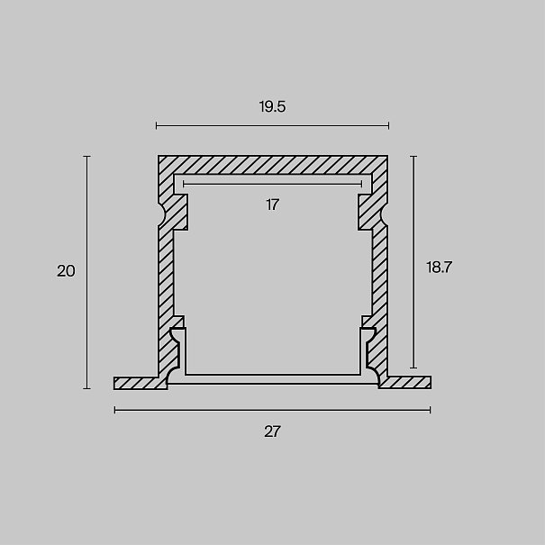 | ALM-2720-S-2M | Алюминиевый профиль встраиваемый с накладным фланцем 27?20 (Серебро, 2 м), ALM-2720-S-2M |