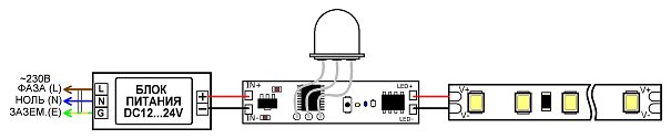 | Входной сигнал | PIR (пассивный ИК) |