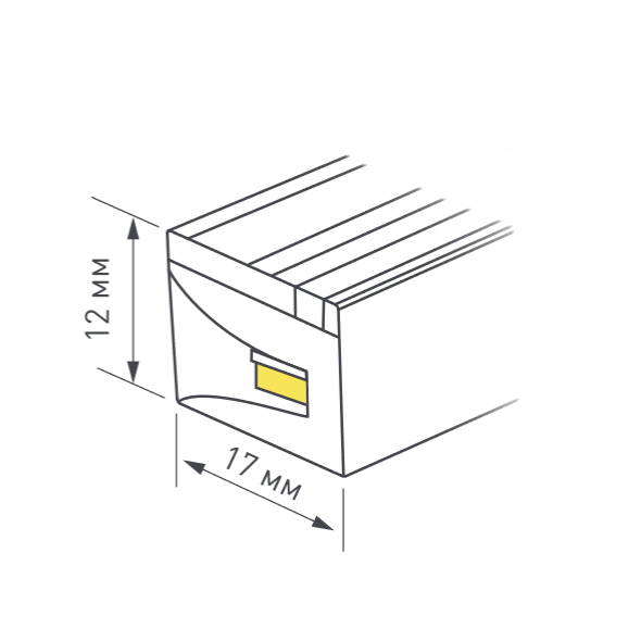 Гибкая герметичная лента (неон серии MOONLIGHT), сечение 12×17 мм. Светодиоды SMD 2835 120 шт/м. Цвет свечения ТЕПЛЫЙ БЕЛЫЙ (3000 К), индекс цветопередачи CRI>80, световой поток 530 лм/м, угол излучения 115°. Мощность 9.6 Вт/м, питание 24 В. Класс пылевлагозащиты IP67. Размеры 5000×12×17 мм. Мин. отрезок 50 мм. Горизонтальный изгиб SIDE, минимальный радиус изгиба 60 мм. Катушка 5 м. Цена за 1 м. Гарантия 3 года. Заменяется на 027938(1).