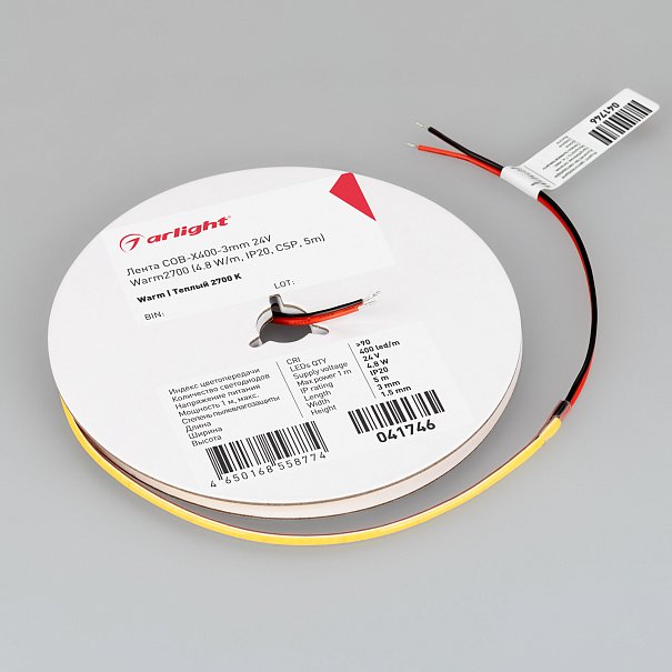 Светодиодная узкая лента сплошного свечения COB серии X480. Светодиоды CSP, 400 шт/м, белая плата шириной 3 мм, скотч 3M. Цвет ТЕПЛЫЙ 2700K, индекс цветопередачи CRI>90, угол 180°. Питание 24 В, мощность 4.8 Вт/м (24 Вт на 5 м). Размеры 5000х3х1.5 мм. Мин. отрезок 20 мм. Цена за 1 м.