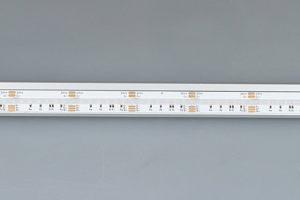 Светодиодная лента сплошного свечения COB серии X840. Светодиоды CSP, 840 шт/м, белая плата шириной 12 мм, скотч 3M. Цвет RGB + ДНЕВНОЙ 4000K, индекс цветопередачи CRI>90, угол 160° Питание 24 В, мощность 17.2 Вт/м (86 Вт на 5 м). Размеры 5000x12x1.9мм. Мин. отрезок 33.33 мм. Цена за 1 м. Обязательна установка на профиль.