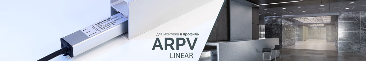 Герметичные источники питания ARPV-LINEAR особенно актуальны в уличных осветительных конструкциях с использованием профилей. Это может быть подсветка элементов фасадов, разнообразные линейные светильники, дополнительное освещение входных групп, козырьков зданий, террас, рекламные инсталляции и пр.