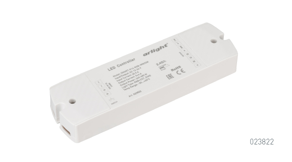 При создании осветительных систем важно выбрать качественное управляющее оборудование. Специалисты Arlight рекомендуют контроллеры SMART или SR с поддержкой пяти каналов управления. Варианты удачного подбора оборудования: