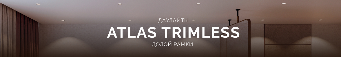 Когда важен чистый качественный свет без отвлекающих деталей, на помощь приходят безрамочные даунлайты ATLAS TRIMLESS.