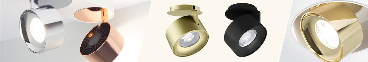 Изюминкой серии является богатый выбор цвета корпуса светового модуля. Помимо классических белого и черного в каталоге присутствуют модели цвета латунь, темная латунь, медь, никель, хром. Можно создать невероятное количество сочетаний, обеспечив разноплановое освещение в помещении, выдержанное в одном стиле.