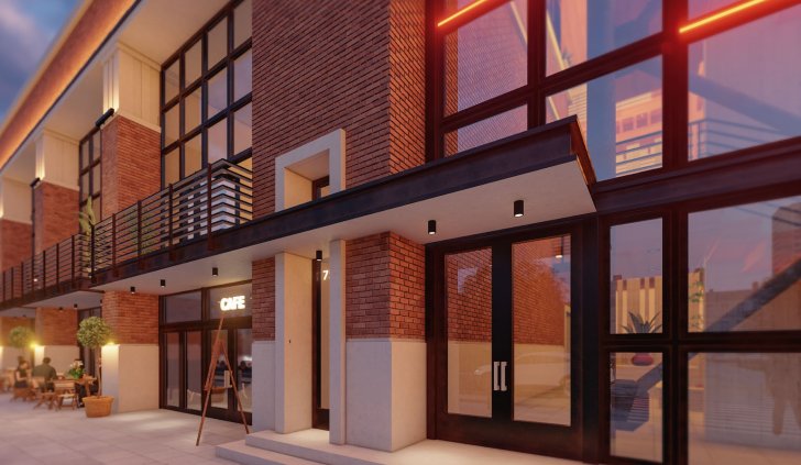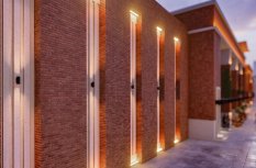 Концепция тепла и уюта поддерживается как кирпичной отделкой здания торгового центра, так и подсветкой. Для ниш в стене использована комбинация из настенного светильника FORMA WALL и прожектора LINE с теплым белым свечением. Стильный светильник с двусторонним свечением вверх и вниз создает оригинальную декоративную подсветку стен, которую обрамляет яркое и теплое сияние тонких прожекторов, установленных по краям ниши. Узкий луч прожектора LINE направляет световой поток, создавая яркую и красивую иллюминацию ниши. Влагозащищенный корпус позволяет эксплуатировать прожектор на открытом воздухе под навесом.