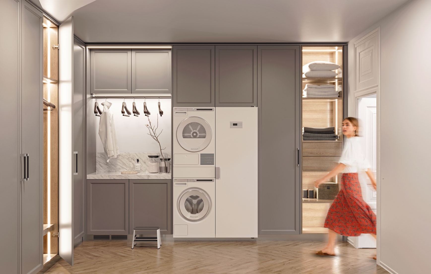 В современной прачечной все продумано до мелочей. Сделать помещение максимально функциональным и эргономичным помогают инфракрасные датчики серии SR PRIME, с помощью которых можно управлять светом взмахом руки или открытием дверцы. Корпус датчика устанавливается в мебель с помощью врезного монтажа, благодаря чему он почти незаметен в интерьере.