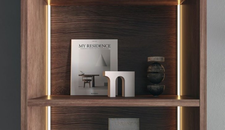 Мини-профили ARH в прямоугольном, угловом и круглом сечении позволяют интегрировать световые линии в различные виды мебели и декоративные конструкции. Минимальная ширина световой линии в модельном ряде профилей ARH составляет всего 3.8 мм, благодаря чему была создана изящная подсветка стеллажных полок.