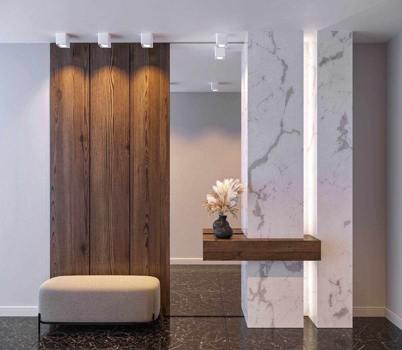 Информационный разделПроектные решенияКонтраст, текстуры и свет в классической прихожей