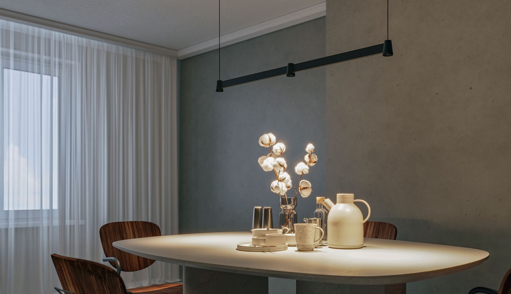 Дизайнерские подвесные светильники ELIZEO в черном и белом цвете благодаря трем световым модулям на линейном корпусе создают сбалансированное локальное освещение над столиками. Аккуратные формы и возможность регулировки подвесов позволяют реализовать лаконичные композиции в различных интерьерах: от пространств в колониальном стиле до минималистичной домашней обстановки.