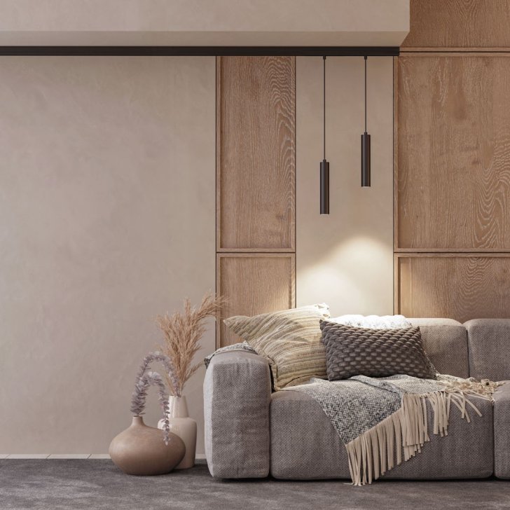 Благодаря применению в интерьере магнитной трековой системы ORIENT возможно создать локальное освещение над диваном в единой системе с общим освещением гостиной. Магнитный трек позволяет установить светильники в нужном месте и по необходимости менять их расположение, расставляя световые акценты и подсвечивая определенную зону, легко адаптируя освещение под различные задачи.