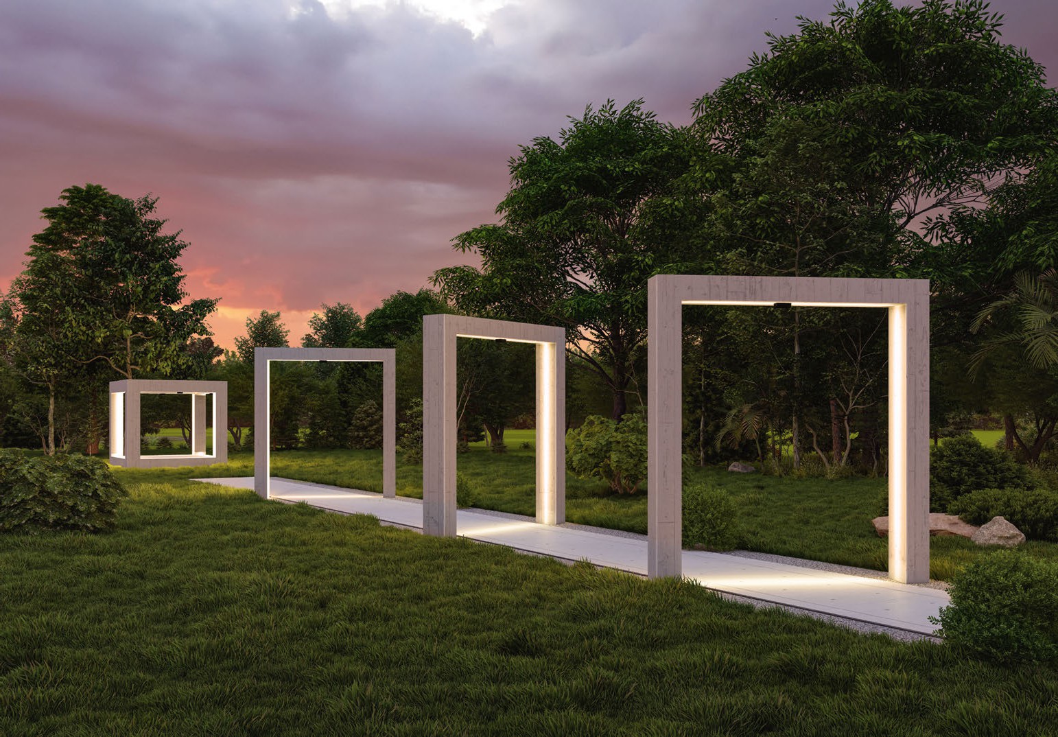 Благодаря тонкой линии света легко добиться изящной контурной подсветки. Светильник позволяет создавать декоративные световые эффекты как внутри зданий, так и на улице — корпус из алюминия надежно защищен от влаги. Качественный экран светильника не допускает паразитной засветки, а теплый белый цвет свечения сочетается с оттенком арт-объектов и красиво ложится на траву и деревья.