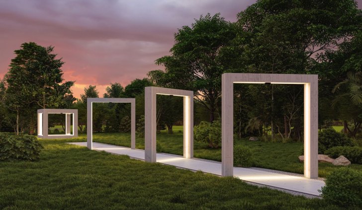Оригинальные световые объекты в ландшафтном парке созданы с помощью накладного светильника STRIPE.